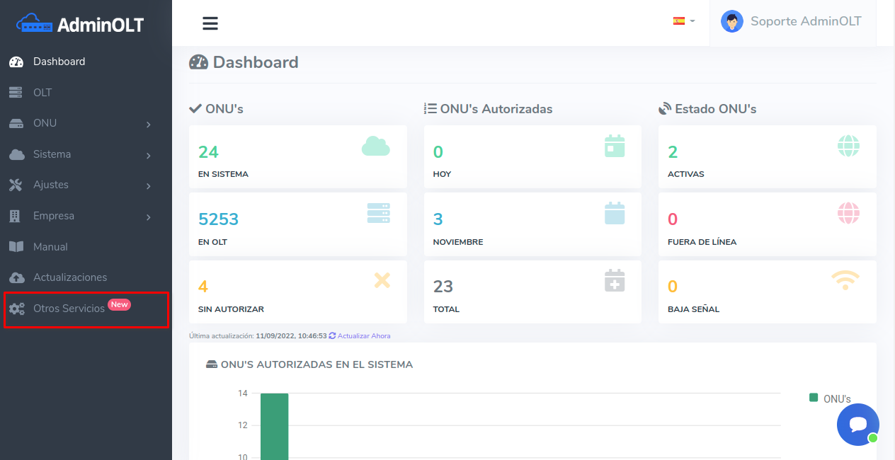 Se agrego en el sistema 2 nuevos elementos, disponibles tanto al final del menú y en la página principal de AdminOLT.