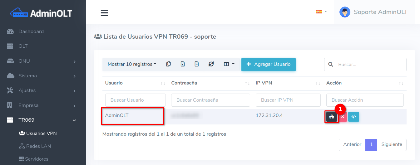 - Puerta de Enlace: IP VPN asignada por AdminOLT