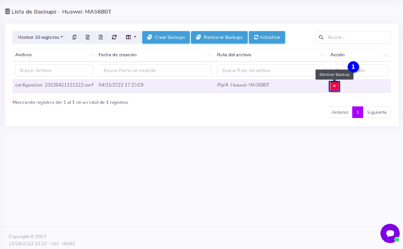 Eliminar respaldo desde AdminOLT