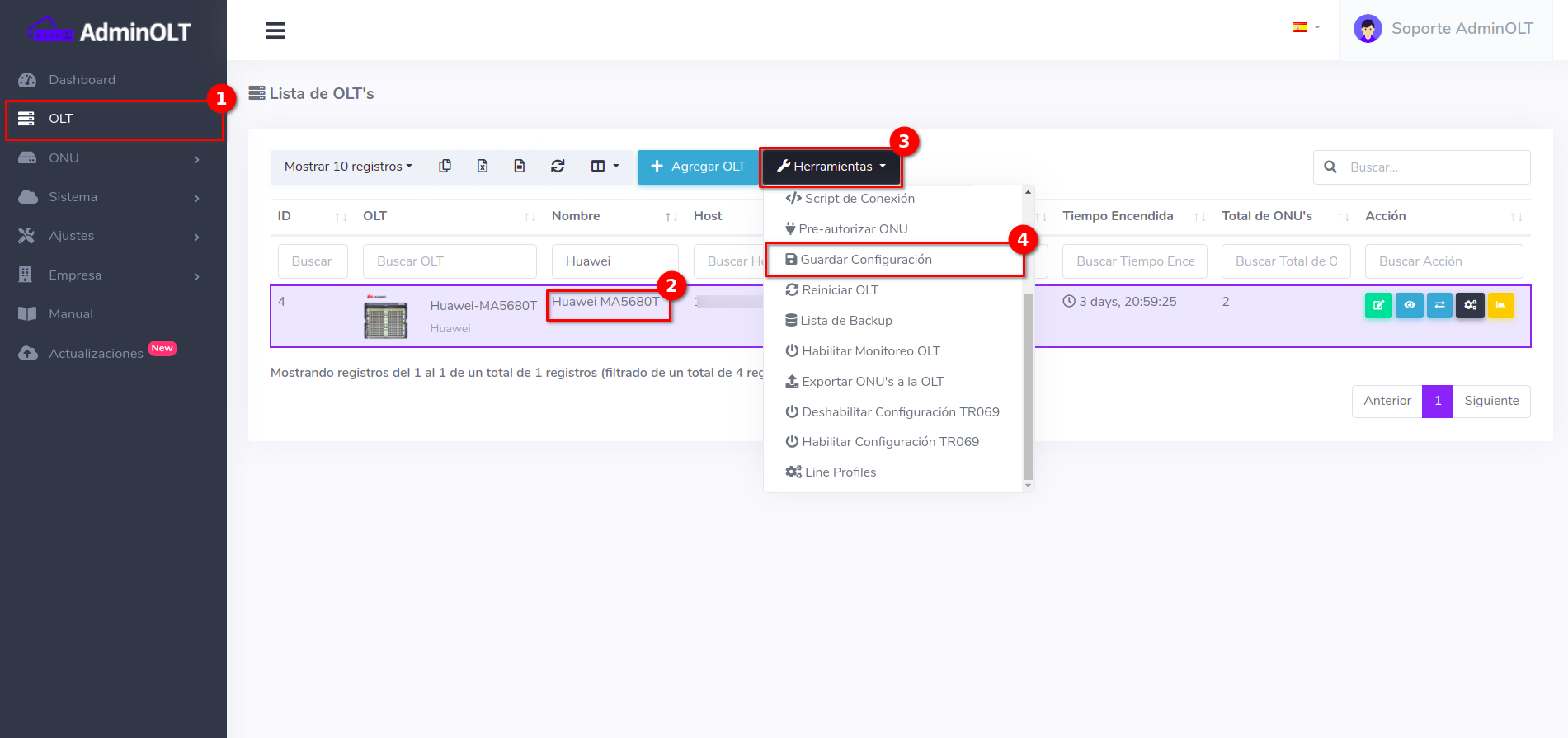 1 Seleccionar la OLT a trabajar