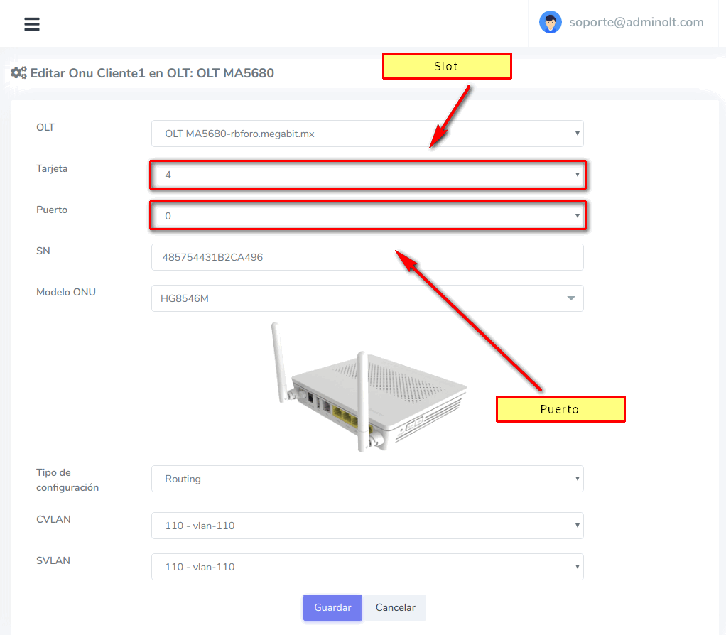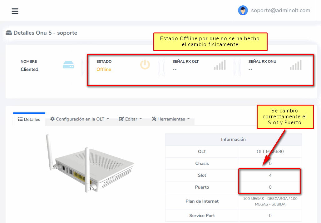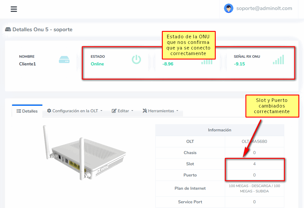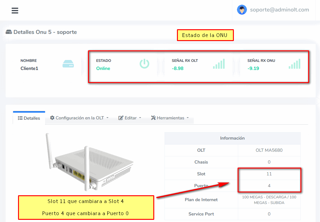 Editar Slot de ONU desde Detalles de ONU