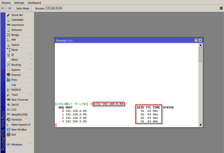 3 Debemos probar la conexión con la OLT con la ip default que se asignó