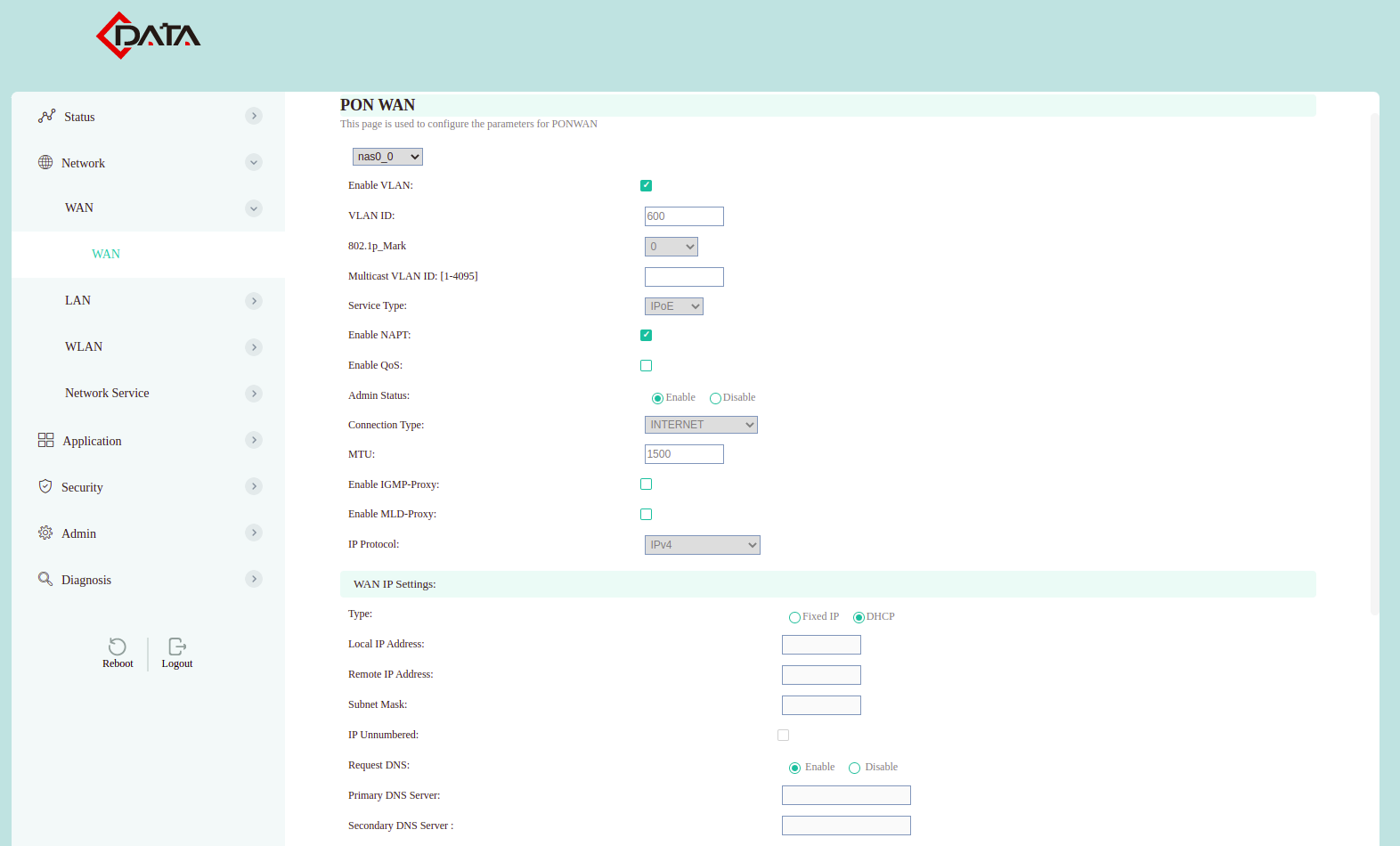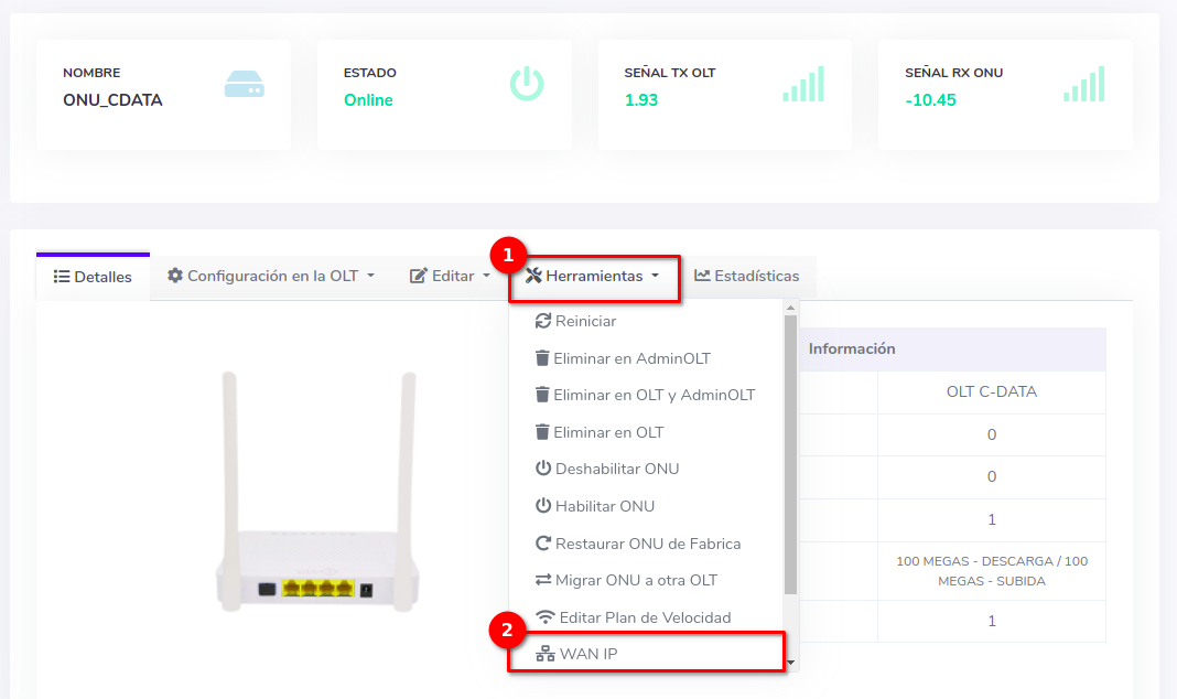 Configuración WAN IP C-Data (AdminOLT)