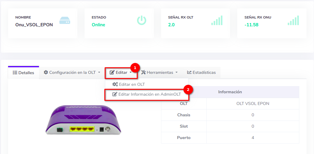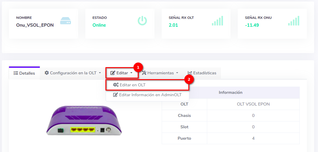 - Editar ONU en AdminOLT desde Detalles de ONU