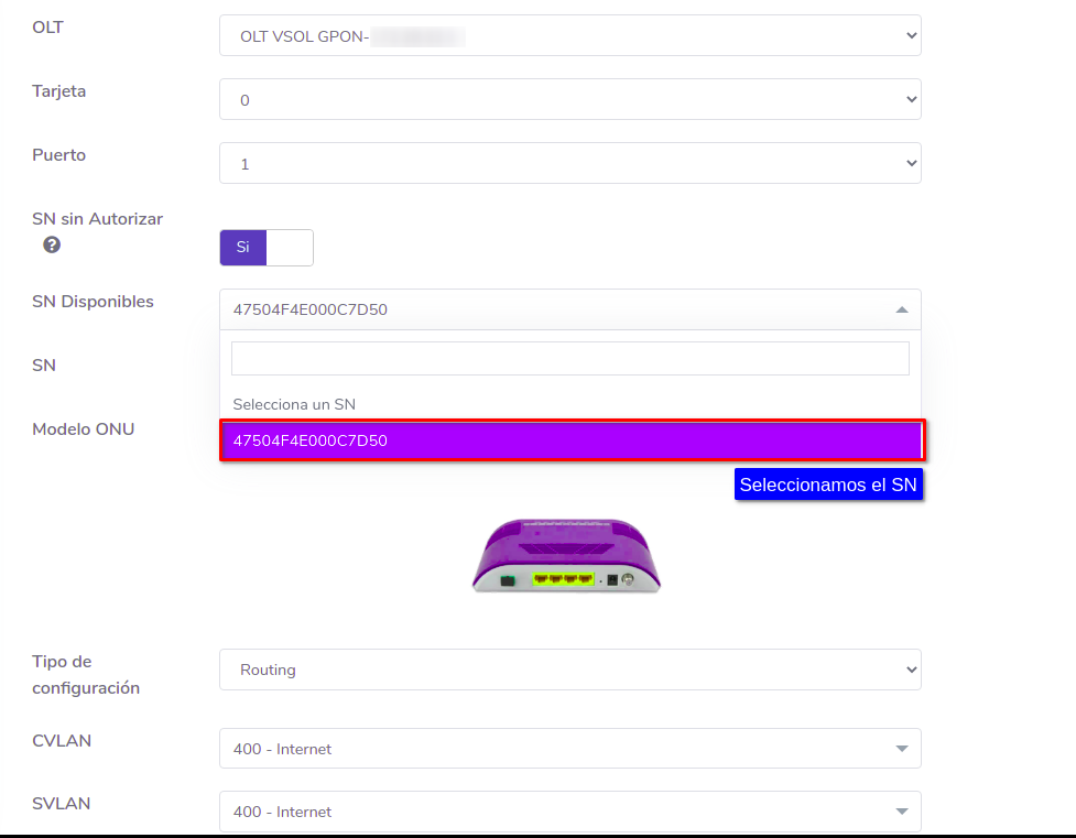 Editar ONU Vsol por Numero de Serie (SN)