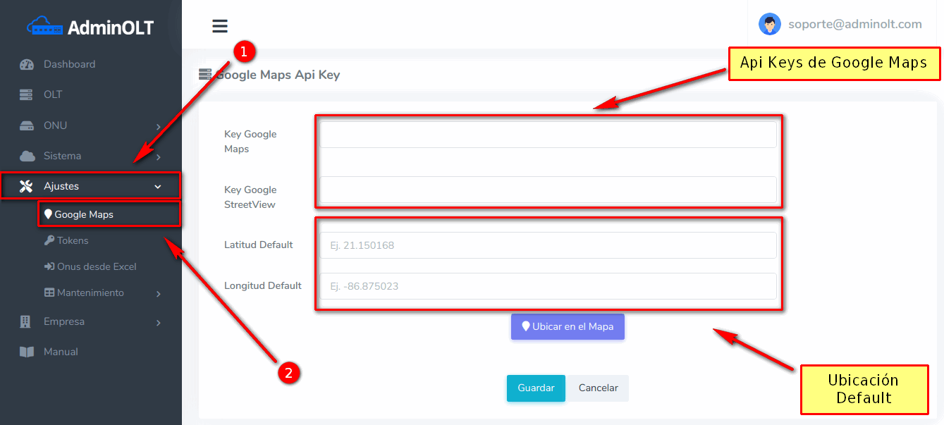 1 Ir a la sección Sistema > Mapas > Mapa de Onus.