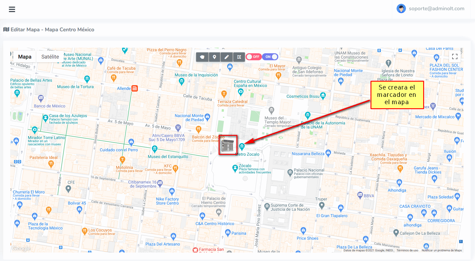 2 Damos click en el mapa en el lugar donde deseamos posicionar el marcador.