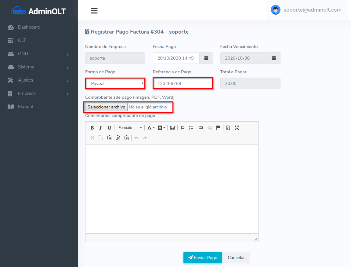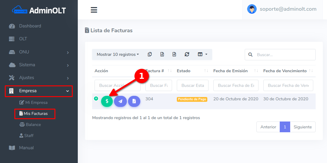 Detalles Sobre Facturas: El precio de las facturas es dependiendo del precio del plan con la que se encuentre la OLT del cliente y la cantidad de OLT's registradas.