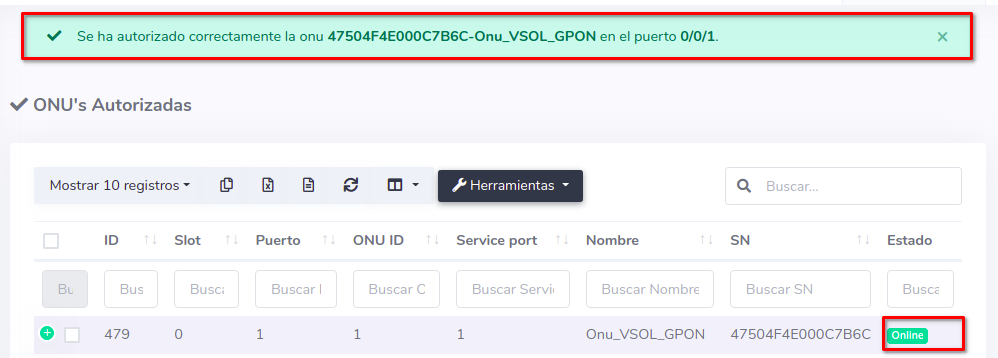 Tome en cuenta que el puerto PON de la OLT debe tener deshabilitado el modo AutoLearn. Si tiene dudas sobre este tema puede consultar el siguiente manual; Configurar Puerto PON
