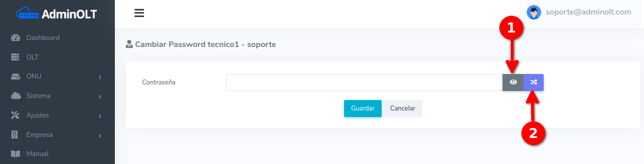- Generar Password: Con esta opción se genera un password automaticamente.