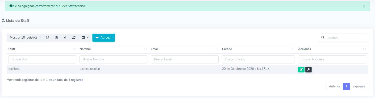 1Ir a la sección de Staff y seleccionar la opción de "Agregar Staff".