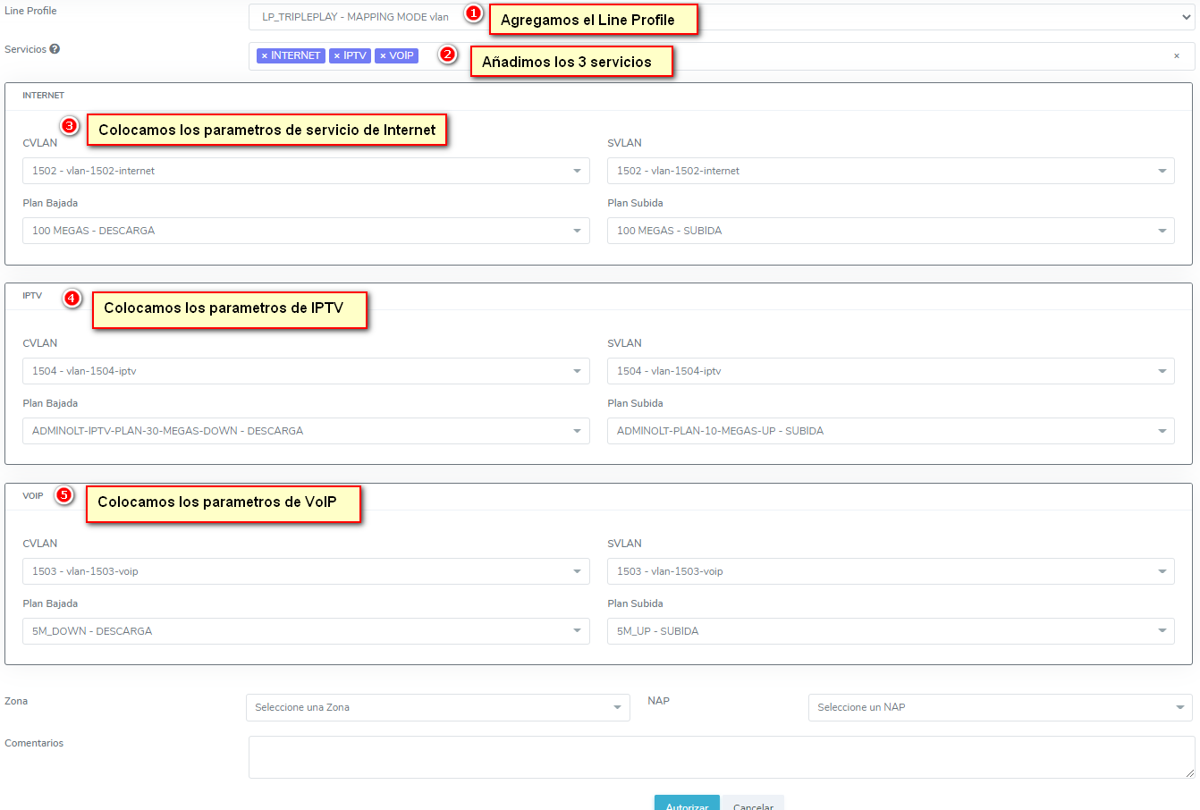 El Triple Play es la capacidad de dar servicio de internet, televisión y telefono a través de nuestra red de fibra óptica. Para ello es necesario que configuremos esos servicios desde AdminOLT